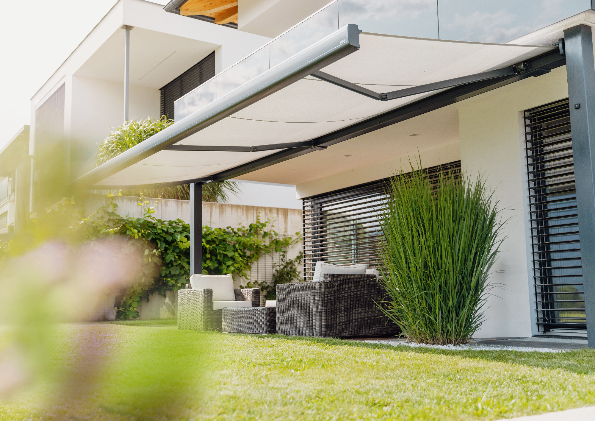 Schützen Sie sich vor Sonne, Regen und neugierigen Blicken. Unsere Markisen verbinden Design und Funktionalität und schaffen eine angenehme Atmosphäre im Außenbereich.
